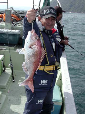 本日はマダイの一本勝負!! 吉田様(上段左)はいきなりビッグなマゴチ!終盤にはマダイもゲット。 臼杵様(上段中央)は難なくマダイをゲット。 豊島様(上段右)はなかなか針に乗らないマダイに苦戦しながらもゲット。 たつや君(下段左)はタイラバは初めて。な〜〜〜んと、見事ゲット!!(青木様のお孫様) 青木様(中段左から2番目)もお孫さんに負けじとマダイゲット。 本日の磯釣りは皆さんに釣果。竿頭は合田様のチヌ9枚。 白井名人のお弟子様(中段左から3番目)は初磯でビッグなチヌをゲット。 釣果も見事なものでした。(中段右)。 磯もまだまだ釣果が望めます。 田村様(下段左)からも釣果写真を送っていただきました。 福永様(下段右)もナイスサイズをゲットしてます。 釣果は掲示板に田村様から報告が有りましたのでご参照くださいませ。 (5月18日)