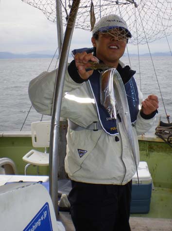 本日はスズキ・タイラバで出船。 潮が大きいのでスズキにはちょっと不向き。 しかし、寿福様が見事にゲット。 タイもポロポロト。 〆は三杯の元、コアジを沢山釣ってもらいました。 (10月22日)