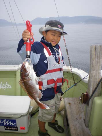 今日は『こどもの日』子供主体で青木様ファミリーがご乗船。 マー君の見事な竿捌きに?と言いながらバラシ4回(笑) でも、ちゃんとマダイをゲット。 和気藹々の一日でした。 (5月5日)