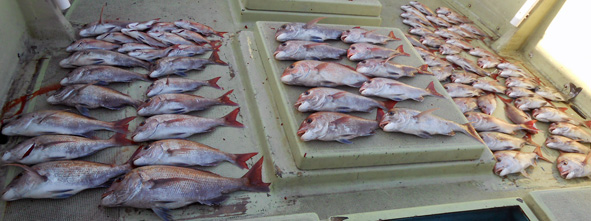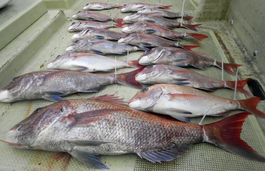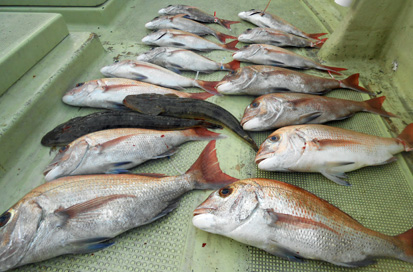 本日は乗り合い3名様で出船。 地合を上手く掴んでまずまずの釣果でした。 竿頭さんは15枚でした。 潮待ちにはアコウを狙いましたがSTKが3年前に放流したアコウサイズ? 水槽で飼っているアコウのサイズとドンピシャ。 釣りの対象になってきました。 この時期でも餌は底物かな。 毎回、マダイの胃袋を検査すると虫類が圧倒的に多いようです。 (11月24日)