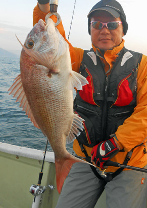 寒波到来で久しぶりの出船でした。 当たりはかなり有りましたがなかなか乗らない状況。 このような状況で威力を発揮したのが惠優丸オリジナルロッド。 乗り調子で微妙な当たりをものにしておられました。 釣りあげたタイは海苔を吐いてましたのでそろそろサビキシーズンですね。 (12月7日)