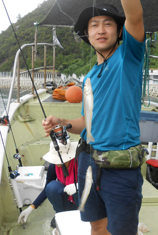 本日の竿頭は中学生。 どのポイントでも竿を曲げていました。 台風一過でしたがコンスタントに釣れています。 13日は天候不順で出船中止です。 (7月12日)