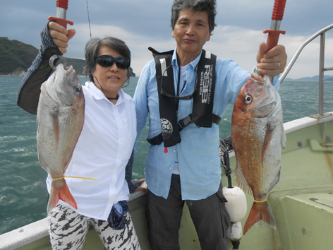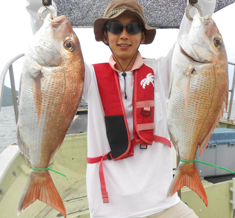 タイラバは順調に釣果が出ています。 本日は短時間ですが地合に青物も狙ってみました。 なかなかのサイズが顔を見せました。 小型は数釣れています。 若狭さんの甥っ子さん、初めてのタイラバでタイ、アコウ、カサゴなどをゲット。 またの御乗船をお待ちしております。 (8月27日)
