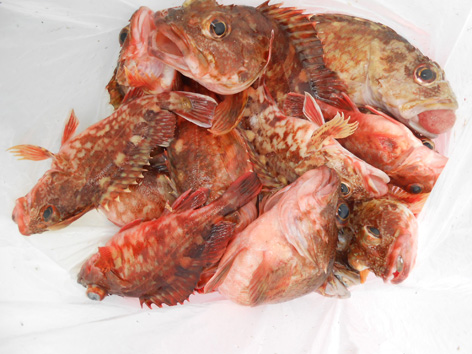 本日も根魚狙いで出船。 勿論、お刺身サイズのカサゴとアコウなどを狙いました。 袋に入っているので釣果の一部しか映っていませんが クーラー満タンに一歩手前の釣果でした。 (2月16日)