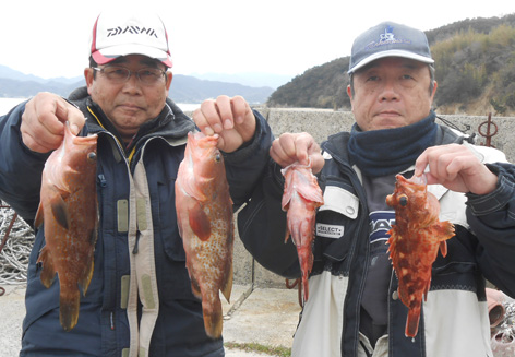 久しぶりに根魚狙いで出船しました。 狙いはお刺身サイズのカサゴとアコウ、ソイ。 マル秘ポイントで他船もおらずのんびりと。 当日はお刺身サイズがバンバン上がりました。 ポン級のアイナメの釣果も有りました。 (2月15日)