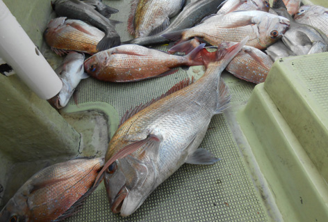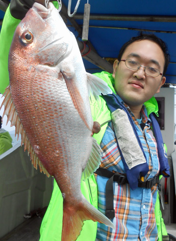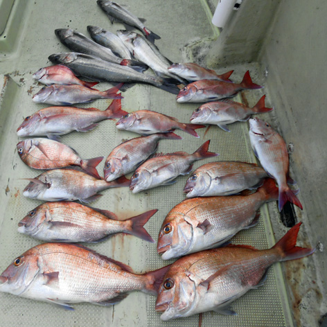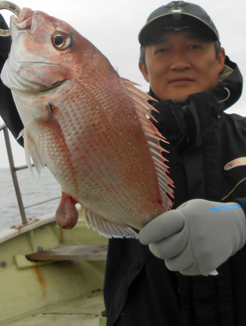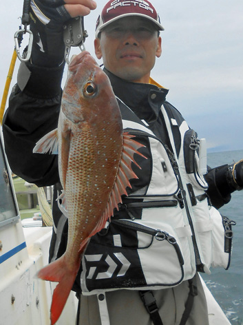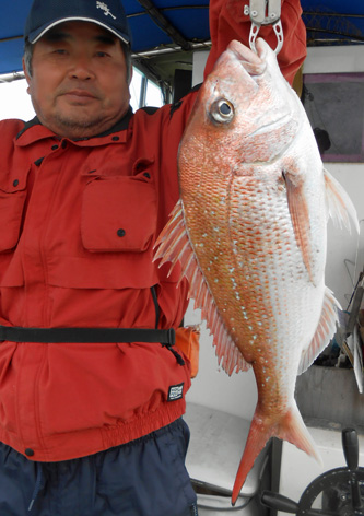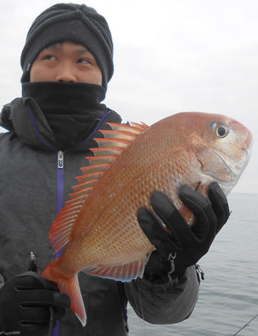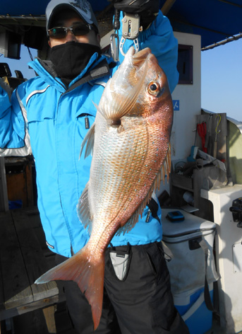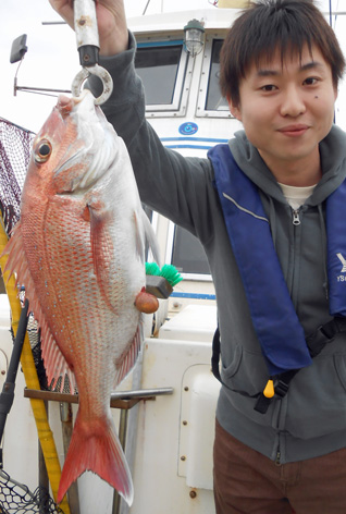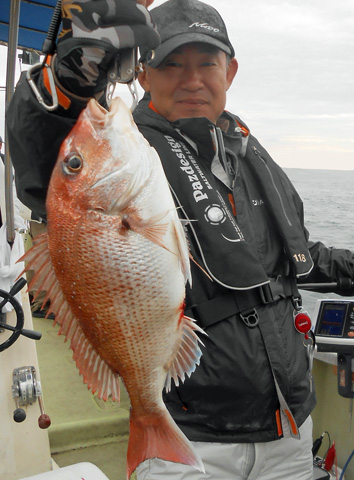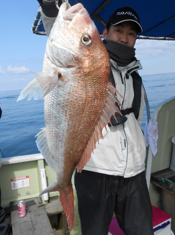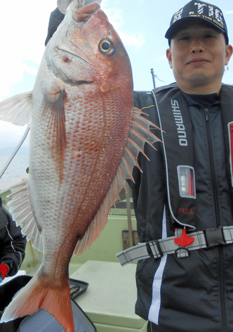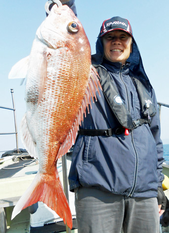 鯛ラバ、青物狙いなど本船の常連さんが初の鯛サビキにチャレンジ。 どうしても長いサビキに馴れない様子。 地合到来時にも仕掛けの直し(汗) しかし、60オーバーを見事にゲット。 また、ハネも3連掛けるなど数を伸ばして頂きました。 サビキはちょっと苦手かな? 次回はタイラバでチャレンジして下さいませ。 ちなみにお客さんのご要望で顔出しはNG。 (3月21日)