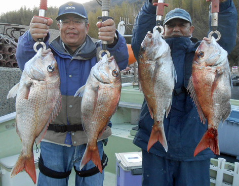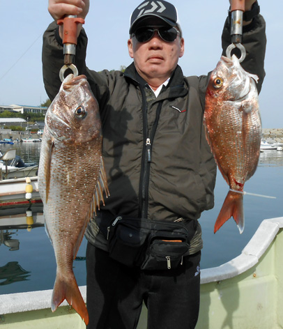 きょうはなかなか厳しい一日でした。 しかし、地合には良型のマダイがヒットしました。 これから潮も大きくなり楽しみです。 (4月12日)