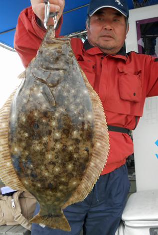 本日は雨の中の釣りとなり船の中はテンションが下がり気味。 いろいろポイントを回って何とか大型をゲットできました。 雨の中、本日は有難うございました。 (3月15日)