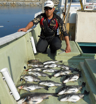 磯からのチヌがここのところに来て一気にノッコミ開始。 数、型ともに上り調子です。 GWあたりがどの磯でも好釣果になるのでは。 ご予約はお早目に。 船もノッコミ最前線。 バラシも目立ちますが地合にはバンバン当たってきます。 (4月26日)
