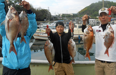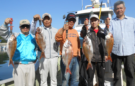 今年初の鯛ラバゲームとなるグループ様。 幸先良くコンスタントに釣果を伸ばしました。 全員安打で皆さん複数枚のお土産となりました。 (5月8日)