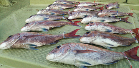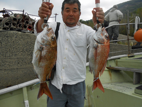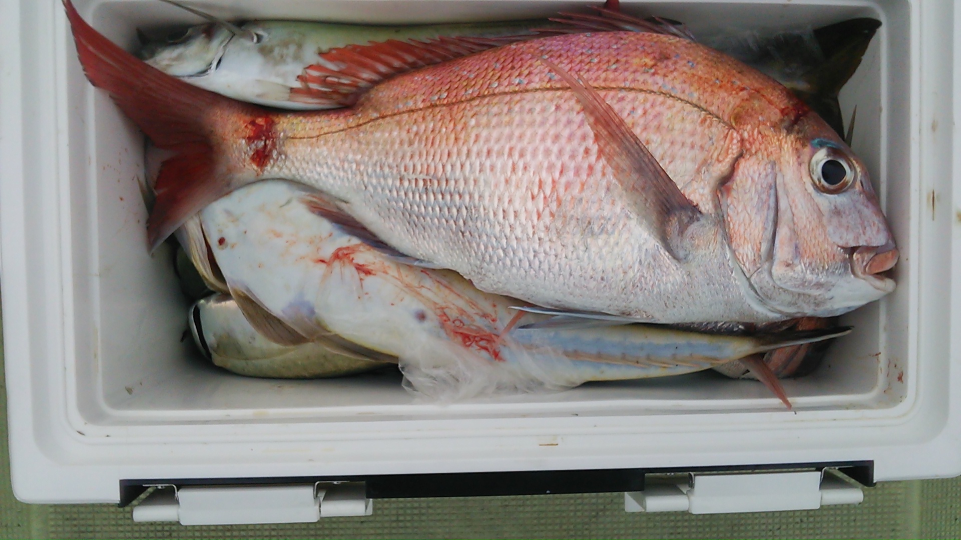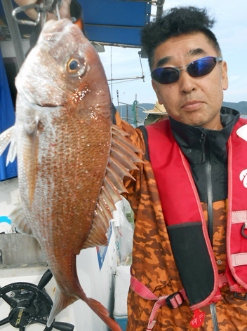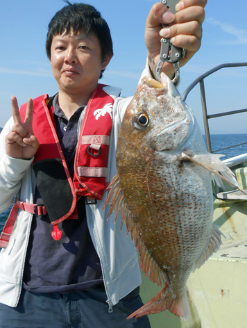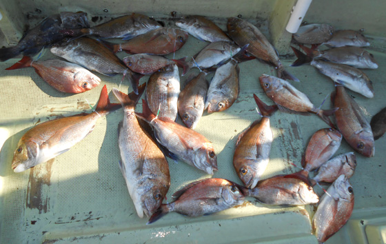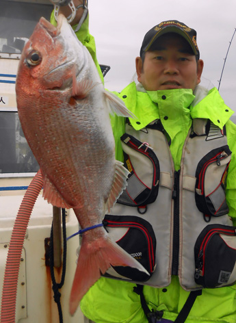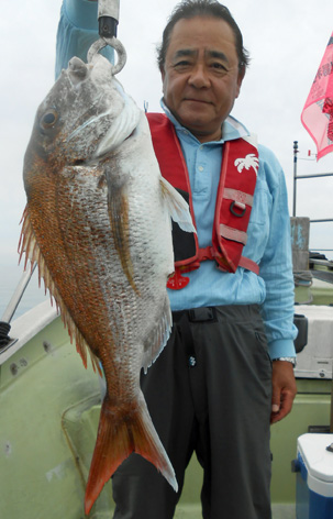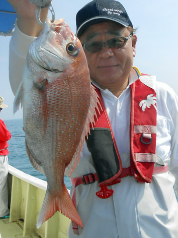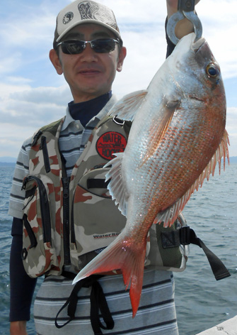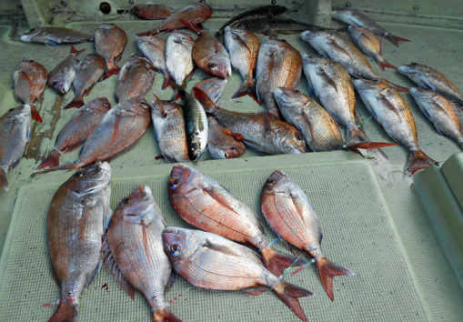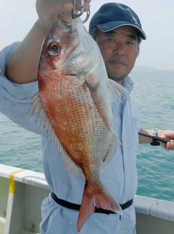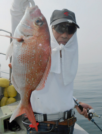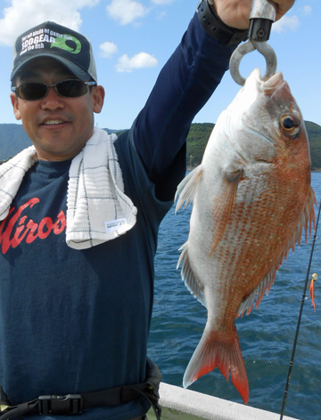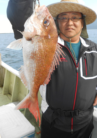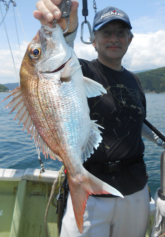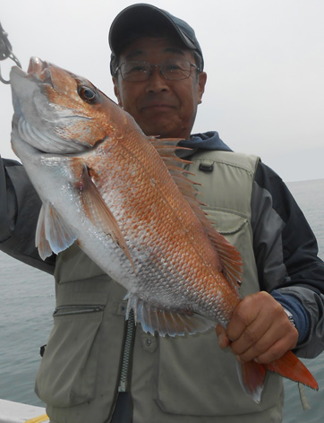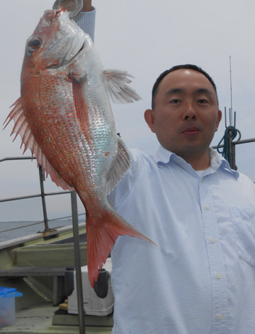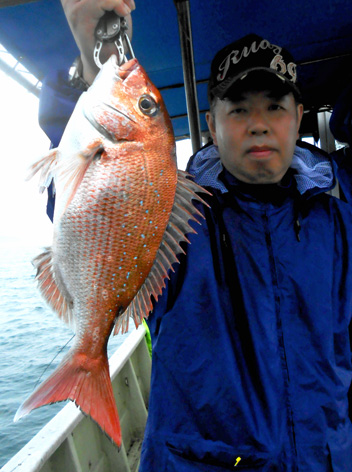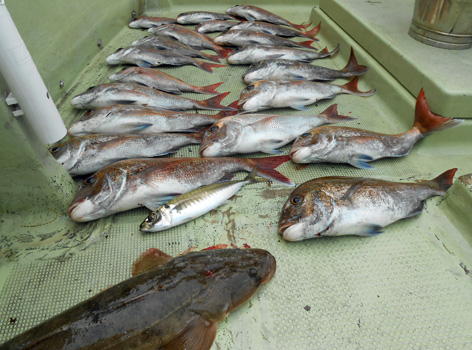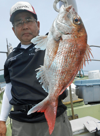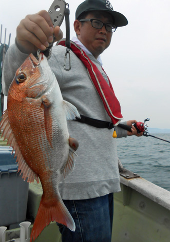 本日は変則2名様で出船。 早朝は雨模様の天気予報だったので遅めの8時に出船。 お客さんのリクエストで根物主体で。 と言う事でマダイは外道!! 写真には出てませんが本命魚はクーラーの中に。 (6月23日)