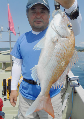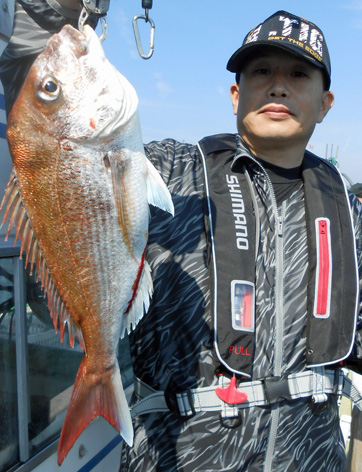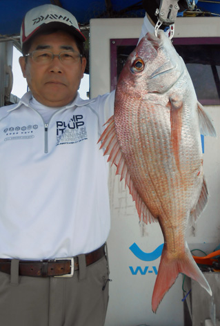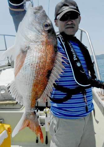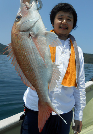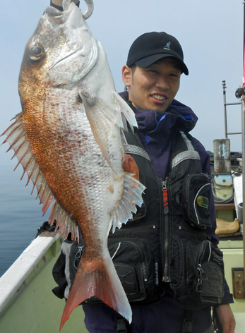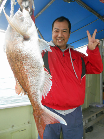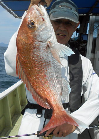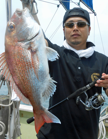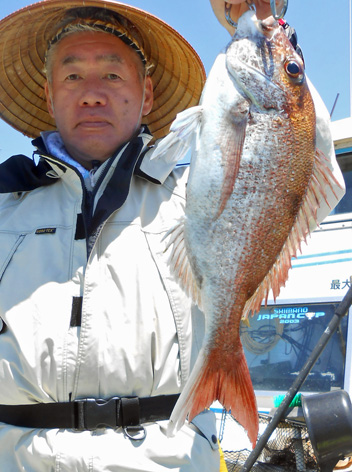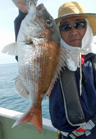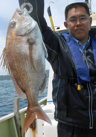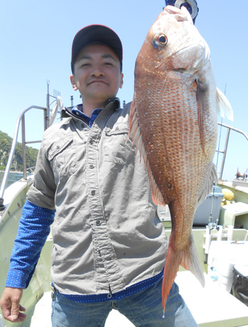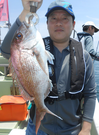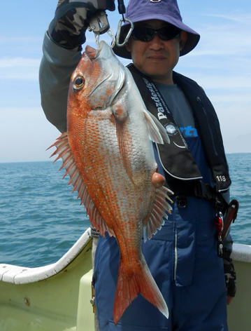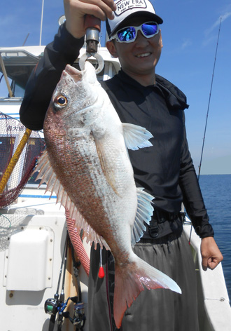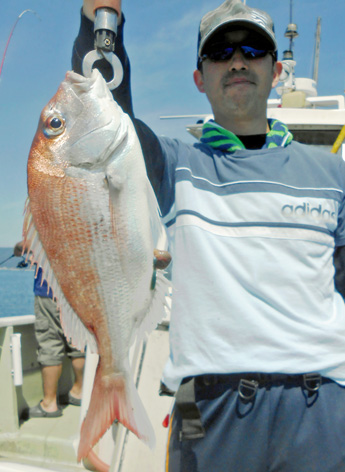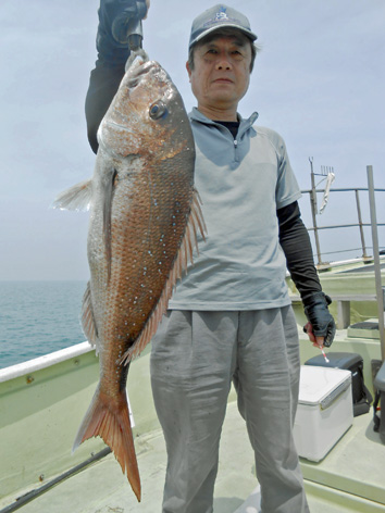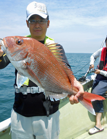 本日も鯛ラバで出船。 レンタルタックルで見事に竿頭。 途中、何度もバラしたのを見ましたが後半には連捕り。 またの大型を狙ってご乗船下さいませ。 (5月23日)