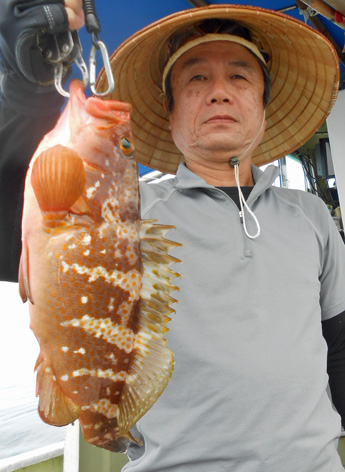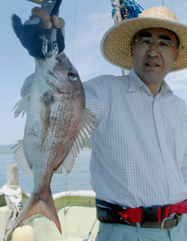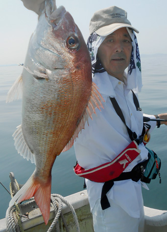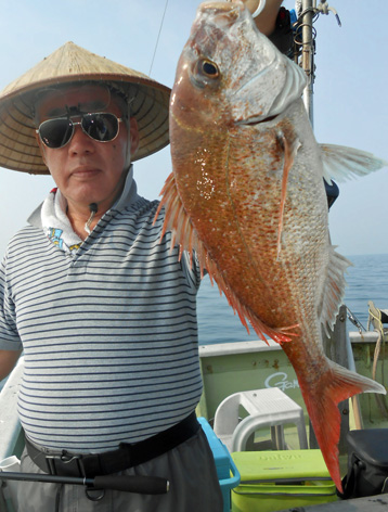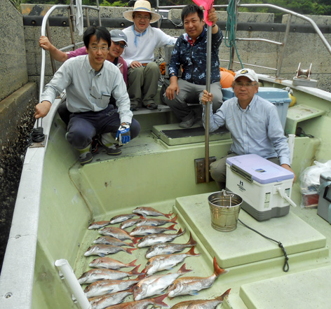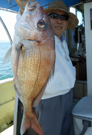 本日はオコゼから始まってアジなど多彩な外道オンパレードでした。 しかし、アコウやオコゼは絶品だから・・・。 鯛もそこそこ釣れて全員安打。 (6月12日)