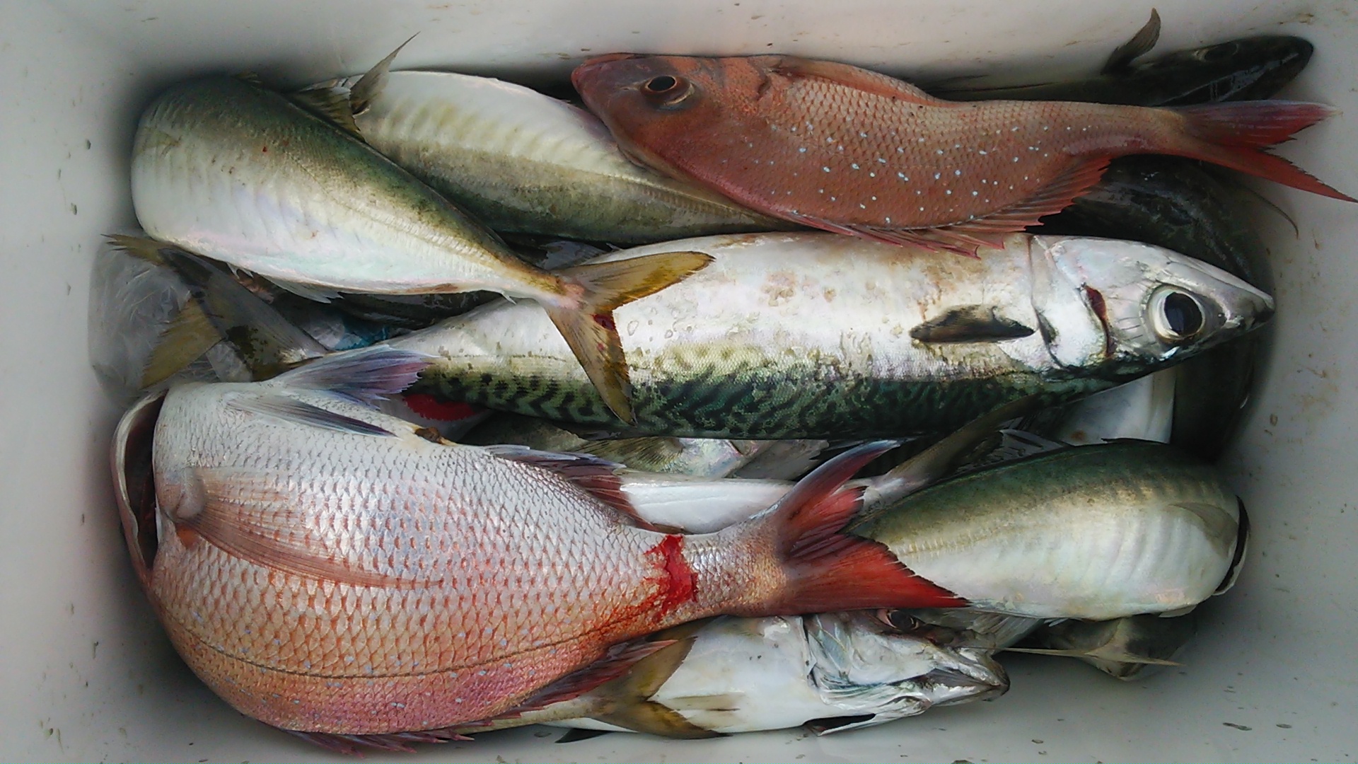 タイラバとアジ・サバのリレーで出船。 アジとサバは爆釣。皆さんのクーらが8分目になったところでタイラバ。 タイラバではちょっと厳しかったけど釣果は見れました。 (5月28日)