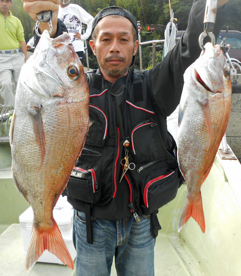 朝一はアジ狙いから。 まずは1種目達成。大人はぼちぼちの釣果だけど…。 次はタイラバに挑戦。何とシオをゲット。 その後良い潮が出だすと50オーバーのマダイもゲット。 思い出に残る一日になったと思います。 大人は傍で見ていて脱帽状態でした。 またのご乗船をお待ちしております。 アジは爆釣モードが日々続いています。 (10月4日)
