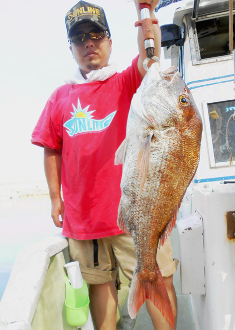 本日はタイラバで出船。 暑い中でしたがラッシュも有りコンスタントに釣れました。 皆様、熱中症には気を付けて下さい。 水分補給を忘れないで。 (7月10日)