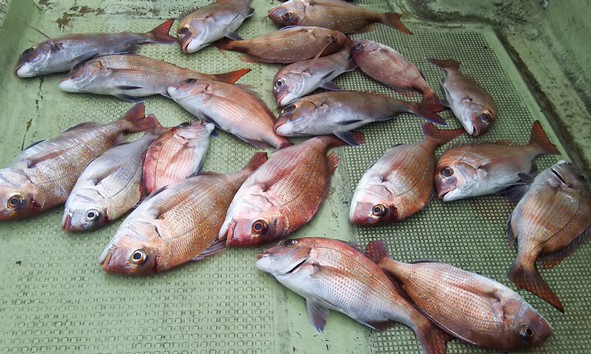 釣果が上向き傾向 風の強い日が続きましたがやっと出船。 地合いには連続ヒット。 しかし、ポロリが多くなかなか数が伸びません。 釣果が上向き傾向です。これからがチャンスです。 (2月22日)