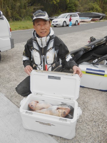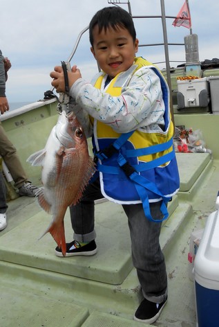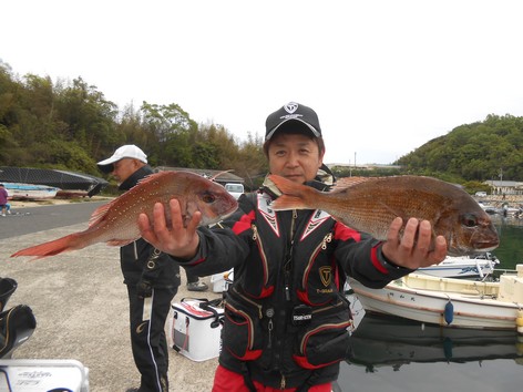 タイラバ、磯ともタイの釣果 本日もタイラバで出船。 お子様も釣果が出て楽しい一日でした。 磯からもマダイが揚がっています。 また、チヌは歳無しがバンバン揚がっています。 (4月28日)