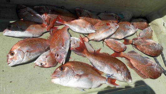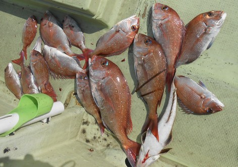 本日も大型マダイ 良型のマダイが揚がっています。 潮次第で連発しています。 乗っ込みが終わる前にお越しください。 (5月6日)