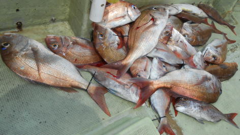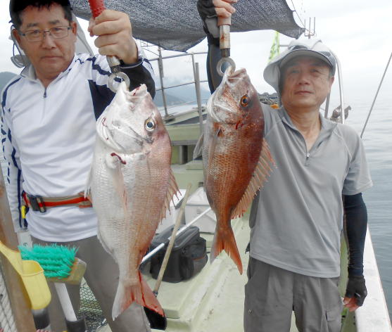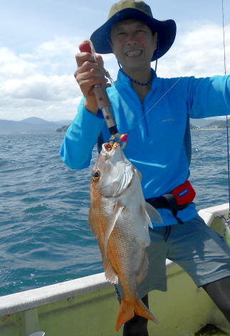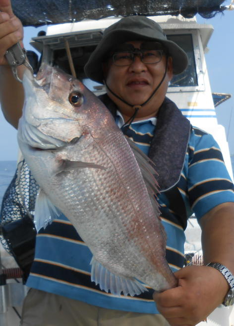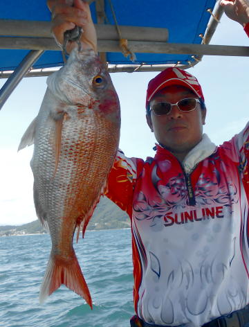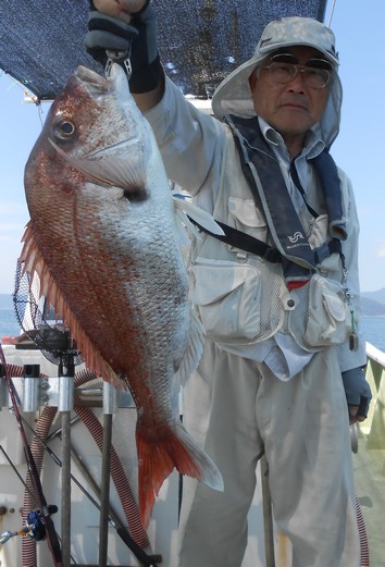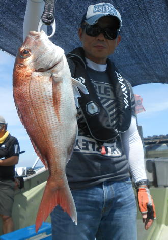大型マダイの釣果! 本日もタイラバ、落とし込みで出船。 落とし込みは好調で青物などが入れ食い状態。 タイラバも潮さえ出ればあたりが頻繁です。 大型マダイのチャンスです。 (8月26日)