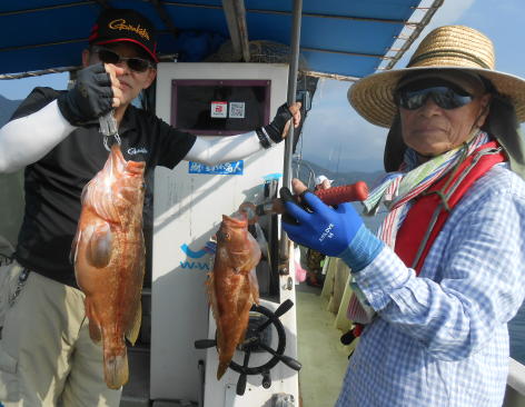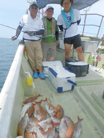 納得の釣果で早上がり! 本日も暑い一日でしたがナイス釣果に恵まれました。 大きなホウボウも釣れて皆さん納得の釣果となりました。 もう、これ以上釣ると帰って捌くのが大変とのことで まだまだ、釣れていましたが午前中で早上がりしました。 (8月10日)